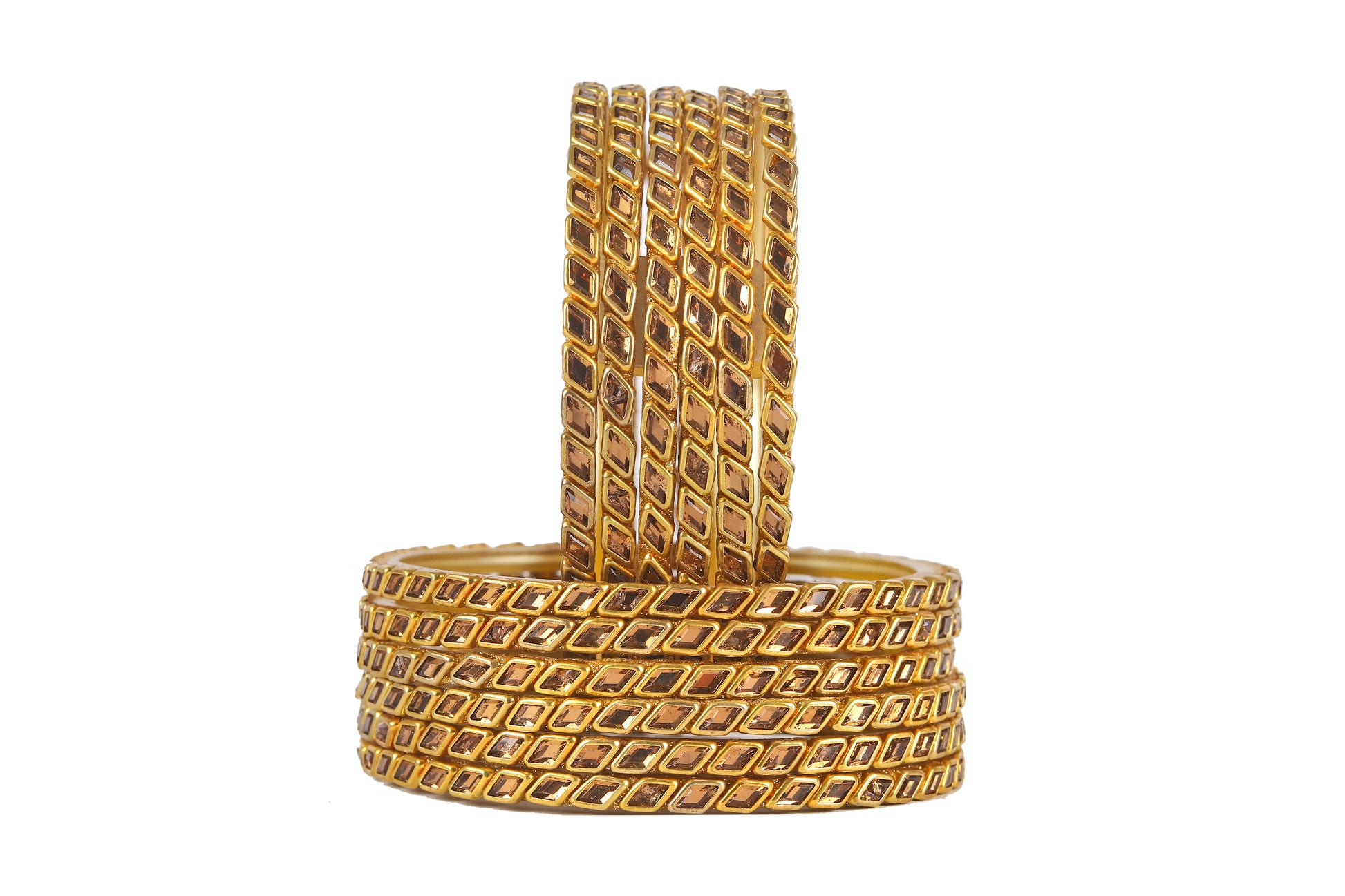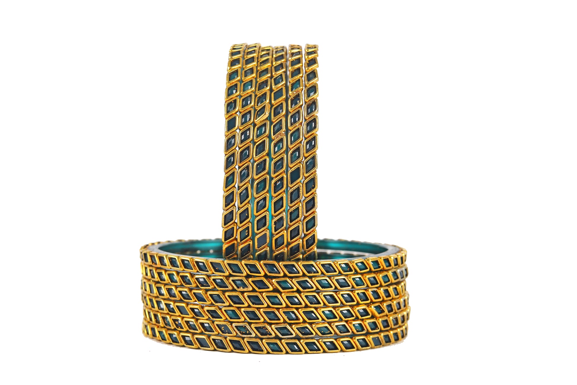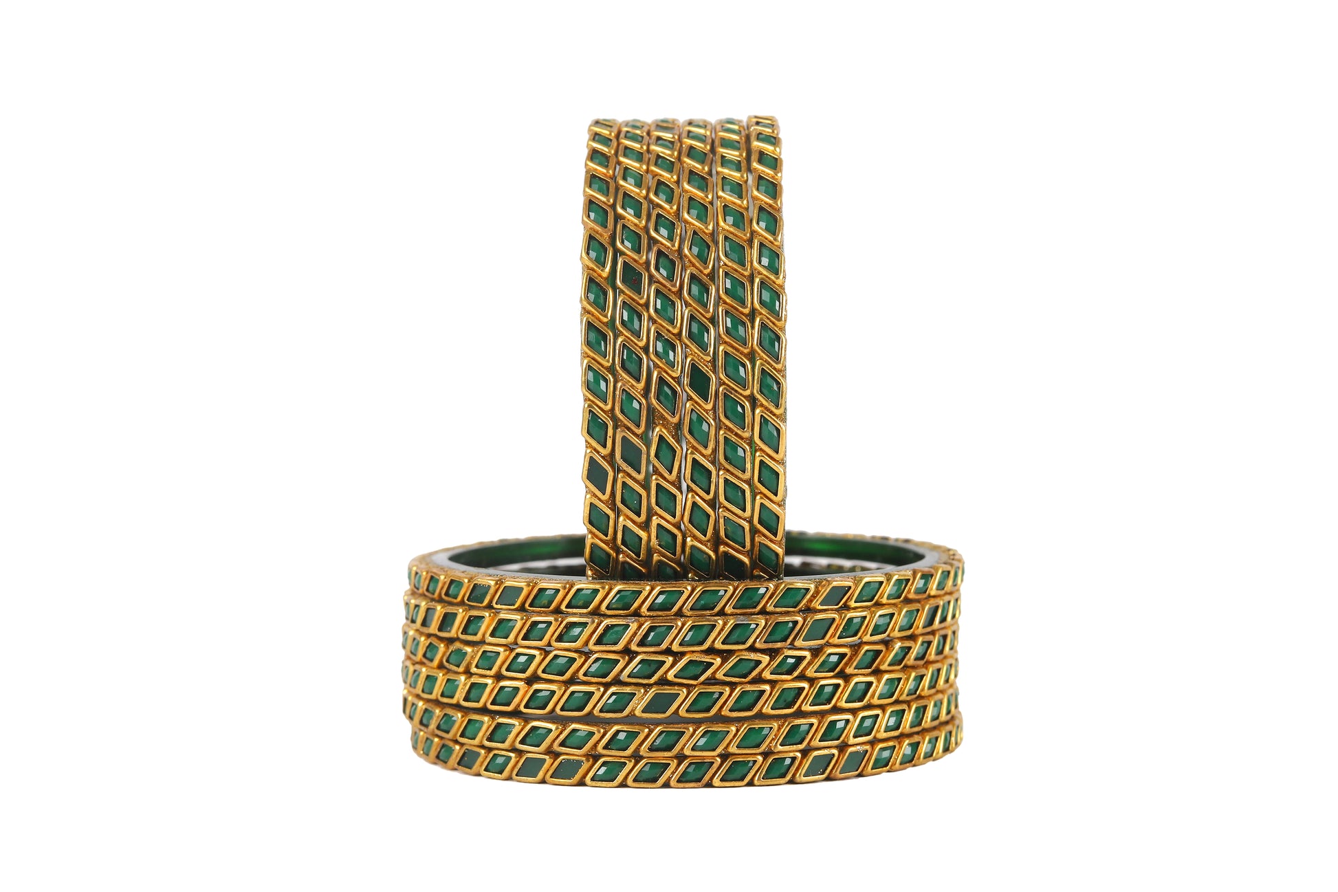 KOTTIAR CREATIONS ALL EYES ON YOUR HANDS Glossy Kundan Design Pattern Glass Bangle Set Studded with Zircon for Women & Girls (Pack of 12)