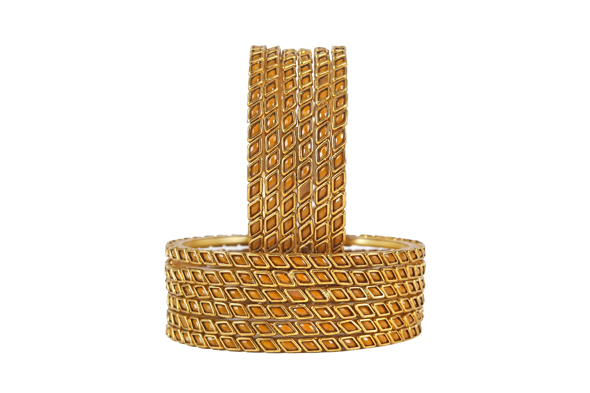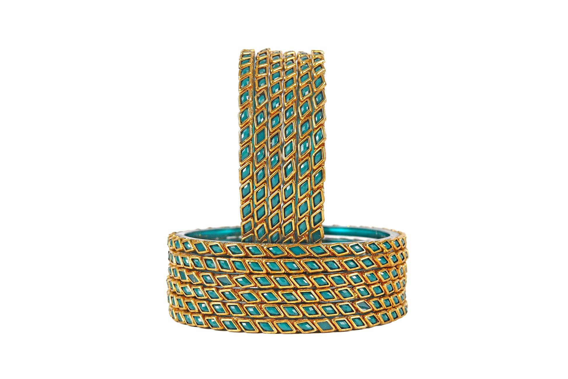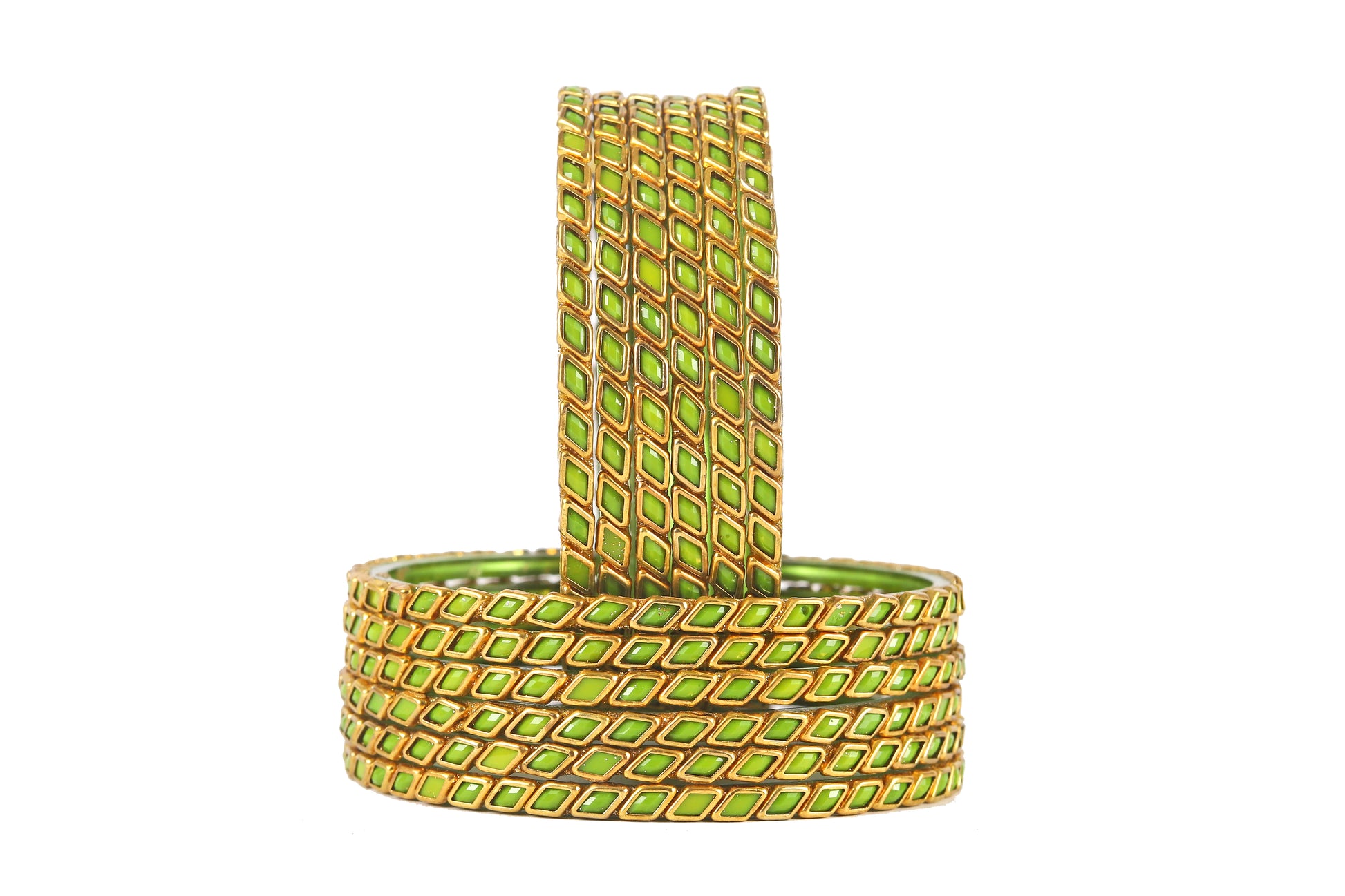 KOTTIAR CREATIONS ALL EYES ON YOUR HANDS Glossy Kundan Design Pattern Glass Bangle Set Studded with Zircon for Women & Girls (Pack of 12)