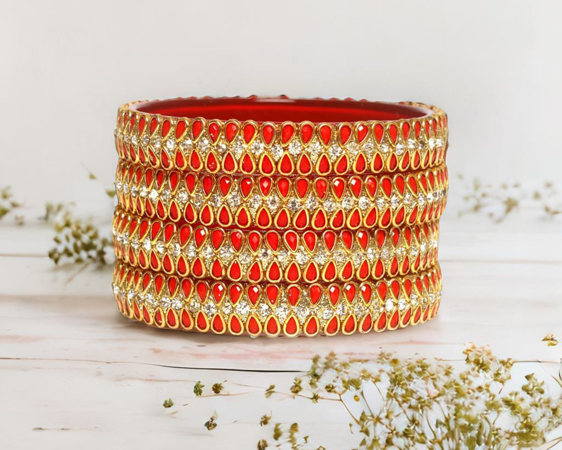 KOTTIAR CREATIONS Glass Bangles Set for Women - Pack of 4 | Handcrafted Traditional Jewelry | Colorful Ethnic Indian Bangle Bracelet | Ideal for Weddings, Festivals, & Gifts