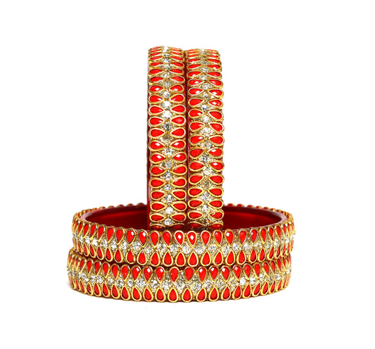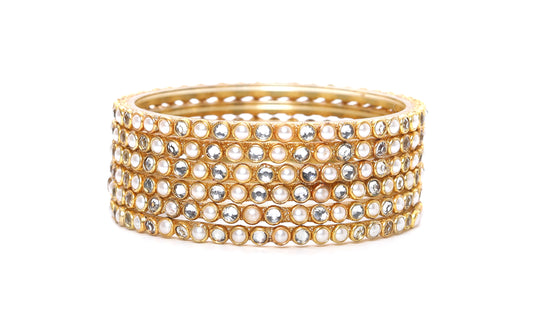 KOTTIAR CREATIONS ALL EYES ON YOUR HANDS Simple and Attractive Glossy Finished Kundan Glass Kada Set For Women and Girls - Pack of 4