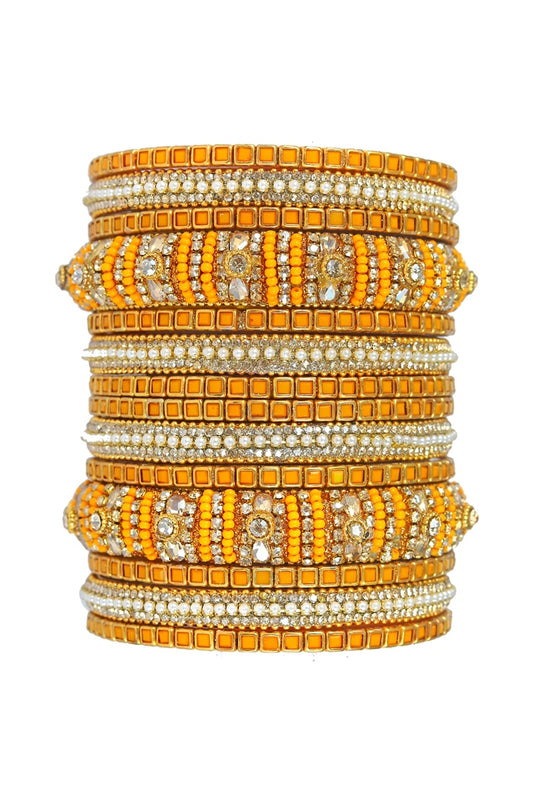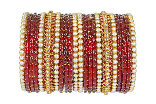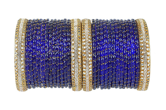 KOTTIAR CREATIONS ALL EYES ON YOUR HANDS Glossy Finished Glass Bangles Set Studded with Zircon Gemstone and Beads For Women and Girls - Pack Of 22